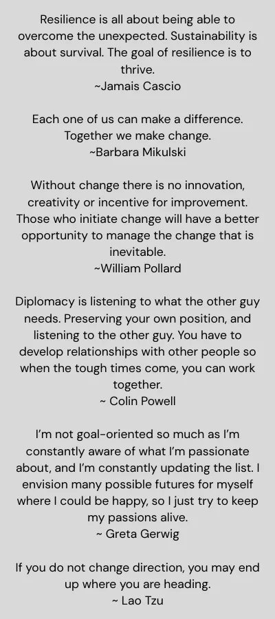The premise of the course was to offer strategies to cope with the continually accelerating change we are living with today.